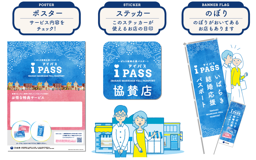 結婚を予定しているカップルや新婚夫婦が、協賛店舗や施設で優待サービスが受けられるいばらき結婚応援パスポートiPASS(アイパス)カード及びアプリを交付しています。