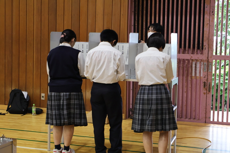 公開日 2024年07月01日 6月17日、磯原郷英高校の3年生を対象に、模擬投票を通じて選挙について学ぶ出前講座を茨城県選挙管理委員会と合同で実施しました。 模擬投票は架空の市長選挙を想定したもので、生徒の皆さんは、どの候補者に投票するのか、候補者の考えや主張について真剣な表情で考え、一票を投じていました。 お問い合わせ 総務課TEL:0293-43-1111お知らせ:総務課のお問い合わせフォームはこちら