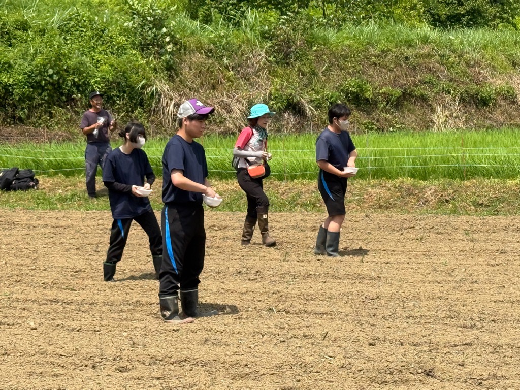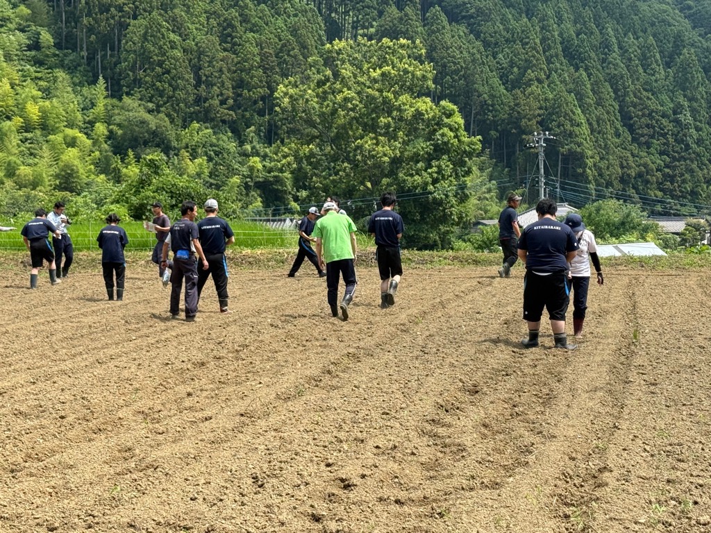 関本町富士ケ丘揚枝方地区で集落支援員として活動されている石渡のりおさんと妻・ちふみさんが、7月3日に茨城県立北茨城特別支援学校の生徒6名と「ランドスケープデザイン(コスモスの種蒔き)」に挑戦しました。
