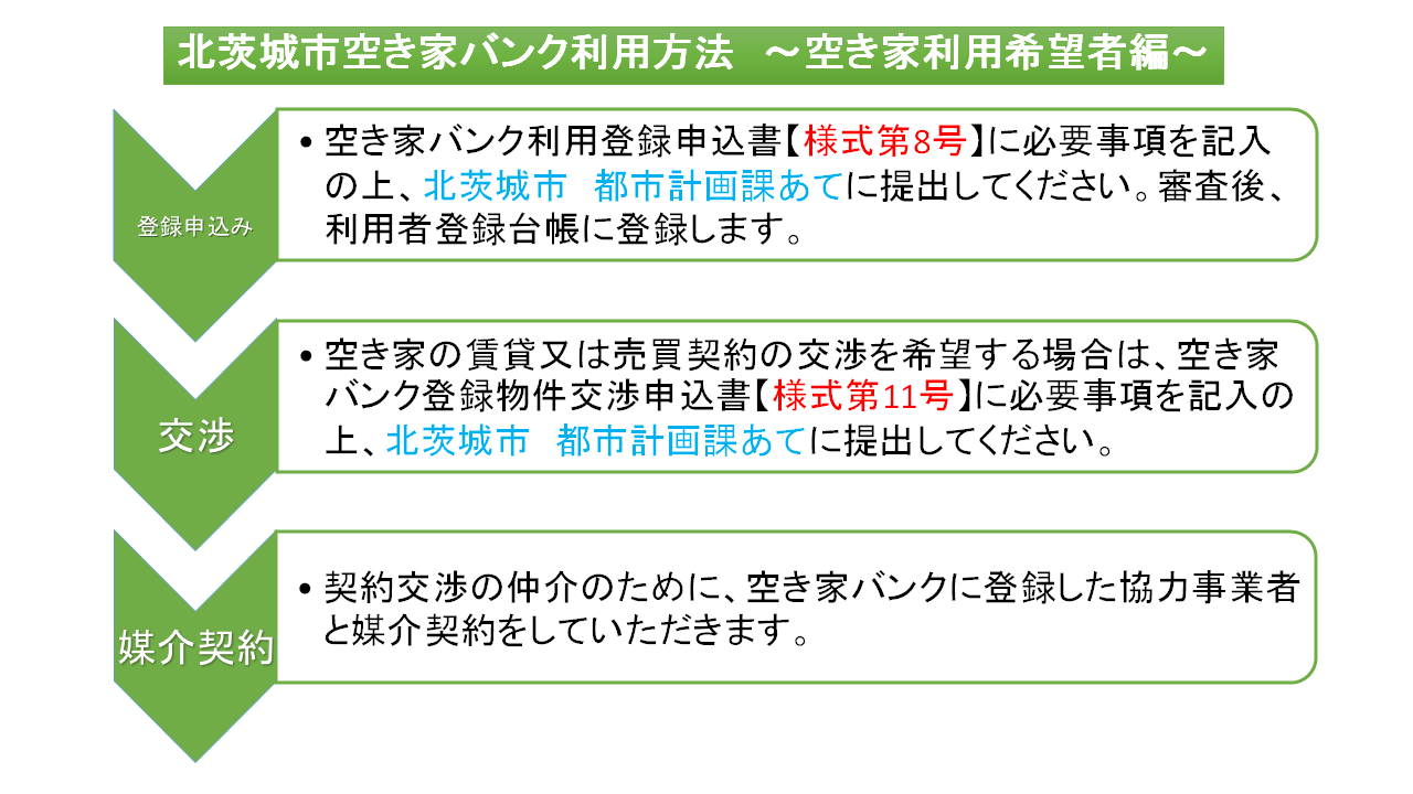 | 利用登録申込書 | 様式第8号[PDF:85.8KB] | 登録されている空き家等の利用を希望する場合 | |