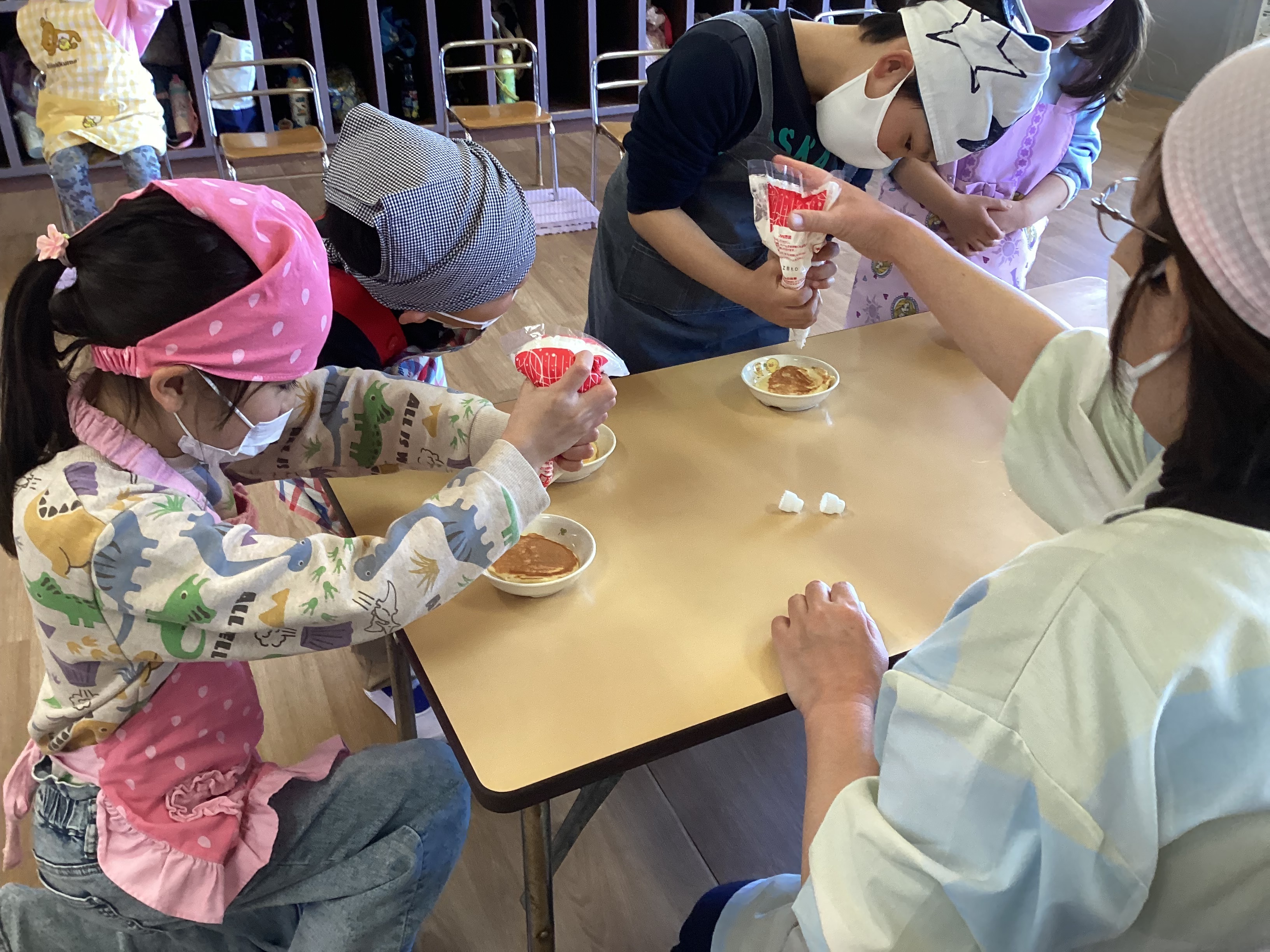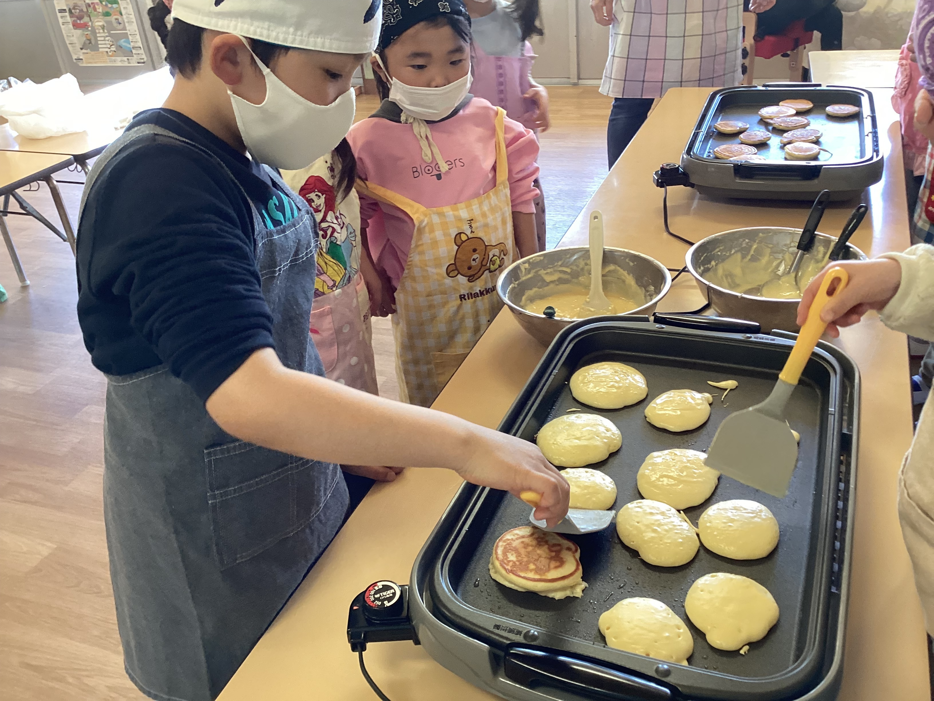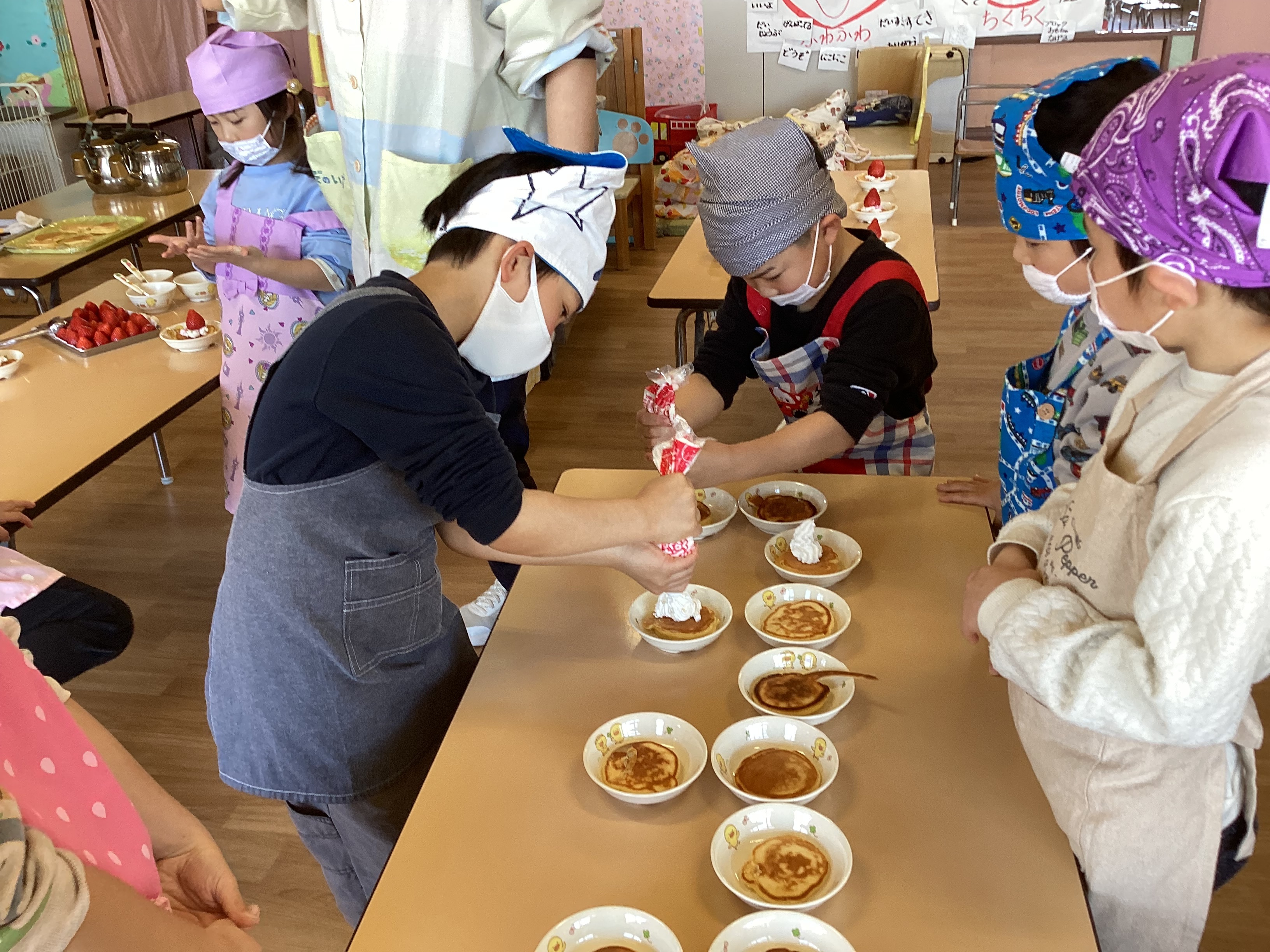 ★3/19(木)つきぐみが、おやつにホットケーキを作ってくれました。卵を割って、粉を混ぜてと「ぐるぐる」「まぜまぜ」、ホイットプレートに気をつけながら焼き上げてくれました。ホップにいちごをのせて美味しく出来上がりました。小さなお友達は「おいいしいね」喜んで食べていました。クッキング1[JPG:2.16MB]クッキング2[JPG:2.18MB]クッキング3[JPG:2.46MB]クッキング4[JPG:2.17MB]クッキング5[JPG:2.31MB]クッキング6[JPG:2.16MB]クッキング7[JPG:2.09MB]クッキング8[JPG:2.21MB]