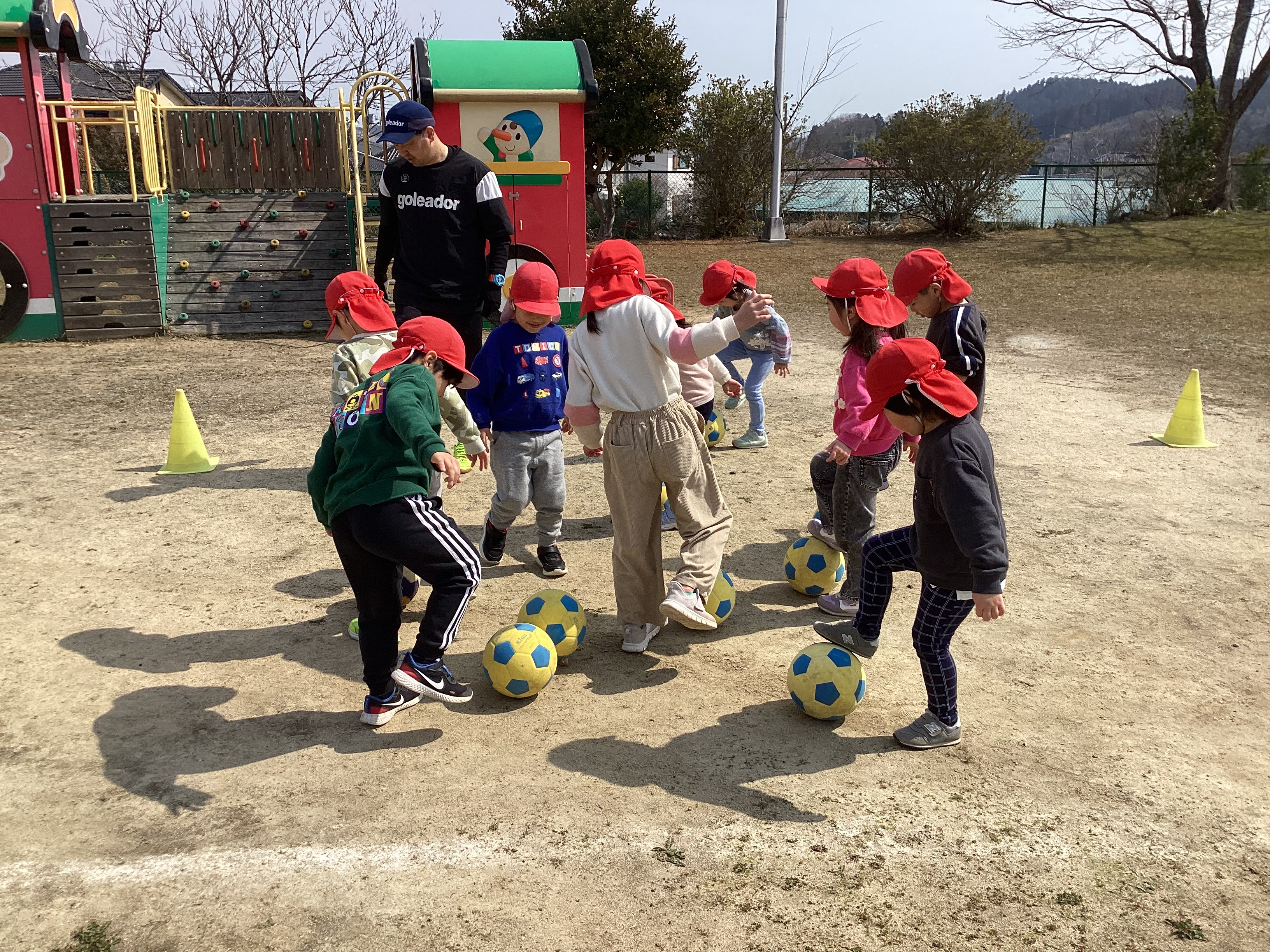 ★3/24日(火)以上児がフットサルに参加しました。ボールを一生懸命に追いかけて走り回る姿、上手くいかないがドリブルを頑張る姿、どの姿も楽しみがあふれていました。フットサル1[JPG:5.81MB]フットサル2[JPG:5.66MB]フットサル3[JPG:4.65MB]フットサル4[JPG:5.19MB]